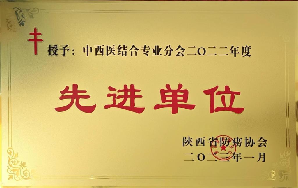 近日,由我院担任主委单位的陕西省防痨协会中西医结合专业分会被省防痨协会授予2022年度先进单位荣誉称号。