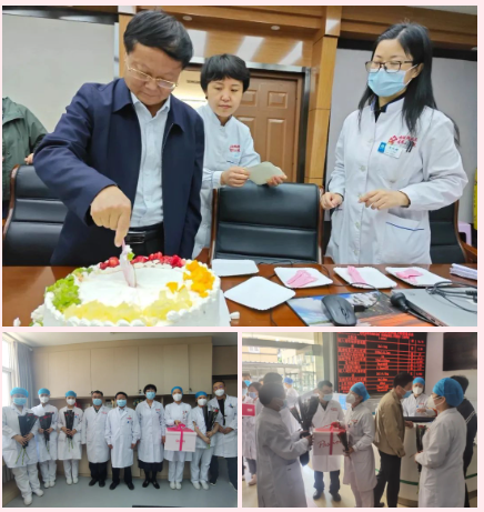 2023年5月12日是第112个5.12国际护士节,当天上午,我院党委书记甘昭平、院长魏海龙等院领导班子成员带领职能科室负责深入临床、医技、手术室、消毒供应中心等科室,为全院护理工作者送去鲜花、蛋糕,并致以节日的问候,感谢他们一年来的辛勤工作与奉献。