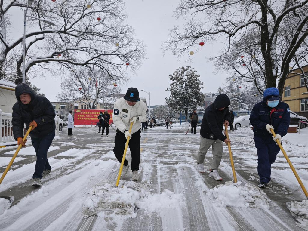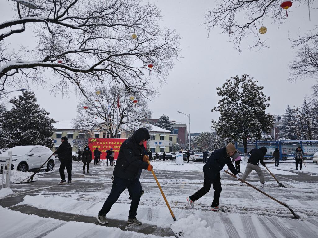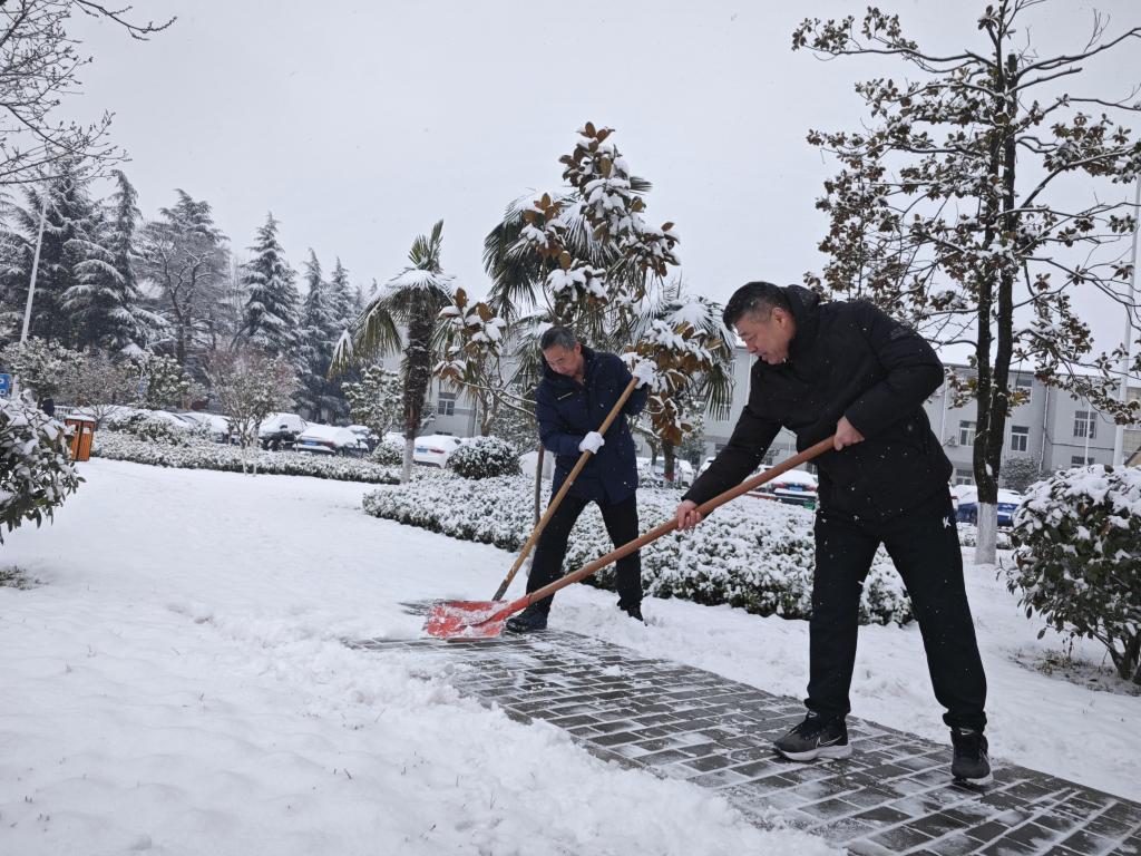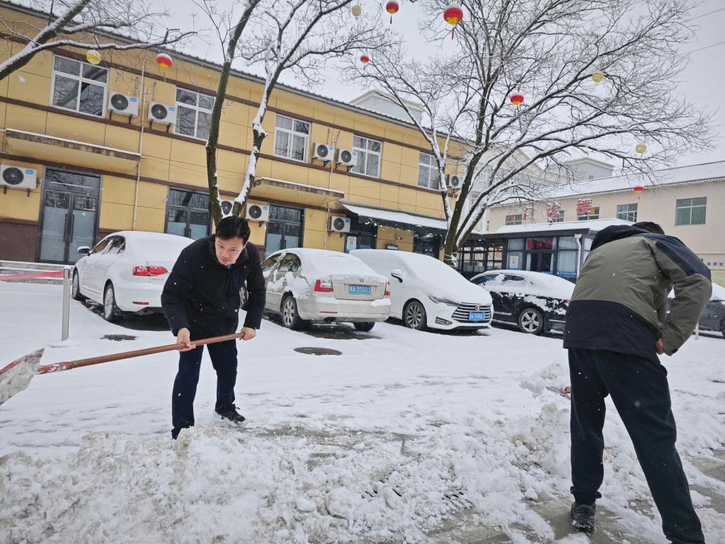 冻雨不期而至,雪地湿滑难行。位于秦岭南麓的山区地带更是如此。为了确保广大患者和职工安全出行,2月21日上午,大雪渐停后,我院行政后勤工作人员在院领导的带领下按照既定安排,第一时间在全院范围内开展扫雪、除冰活动,疏通人员进出的主要干道和线路,确保“医”路平安。