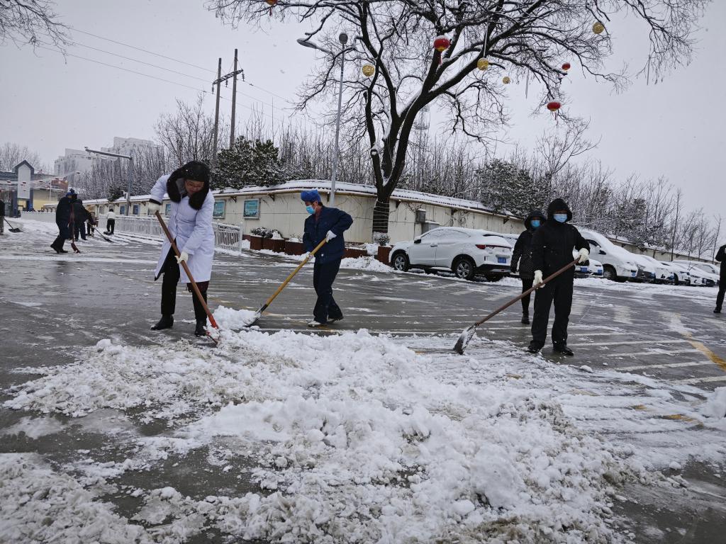 大家顾不上刺骨的风雪,拎上雪具,挥揪铲雪,分头行动,在医院大门口、门诊楼、病区楼、医技楼、患者餐厅门口、院内外停车场、职工家属院大门口等处,你一铁锹我一铁铲,忙得不亦乐乎,经过一个多小时的全力清扫,院区公共场合所有人行通道的积雪基本清理完毕,人员、车辆出行畅通,井然有序。