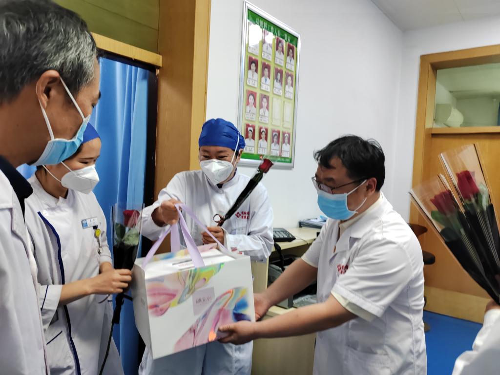 慰问小组深入临床、医技、手术室、门急诊、消毒供应中心等科室,为全院护理工作者送去鲜花、蛋糕,并致以节日的问候,感谢他们一年来的辛勤工作与奉献,一个蛋糕,一束鲜花,一声节日问候,看似平凡,却浓缩了医院对护理人员的无限祝福,为大家营造浓浓的节日仪式感。