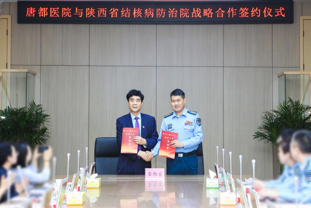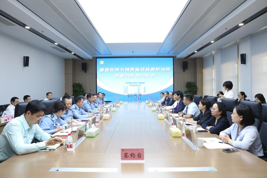 5月15日下午,陕西省结核病防治院(陕西省第五人民医院)院长魏海龙一行15人到空军军医大学第二附属医院(空军军医大学唐都医院)学习交流,并签署战略合作协议。这是医院继2023年与空军九八六医院签署战略合作协议后,再次贯彻落实双拥共建战略、助推医院高质量快速发展的有力举措。