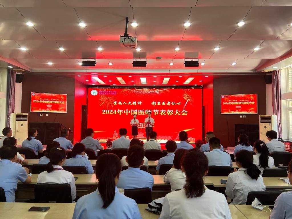 为深入贯彻党的二十大和二十届三中全会精神,大力弘扬伟大的抗疫精神和结防人崇高的职业情怀,团结凝聚广大医务工作者与党同心、与党同行,不断谱写新时代医院高质量发展的新篇章。8月19日我院围绕“崇尚人文精神,彰显医者初心”的主题举行医师节慰问及表彰活动。表彰大会上,院领导班子、获奖集体和个人、临床医技科室主任、行政机关负责人共100多人参加。