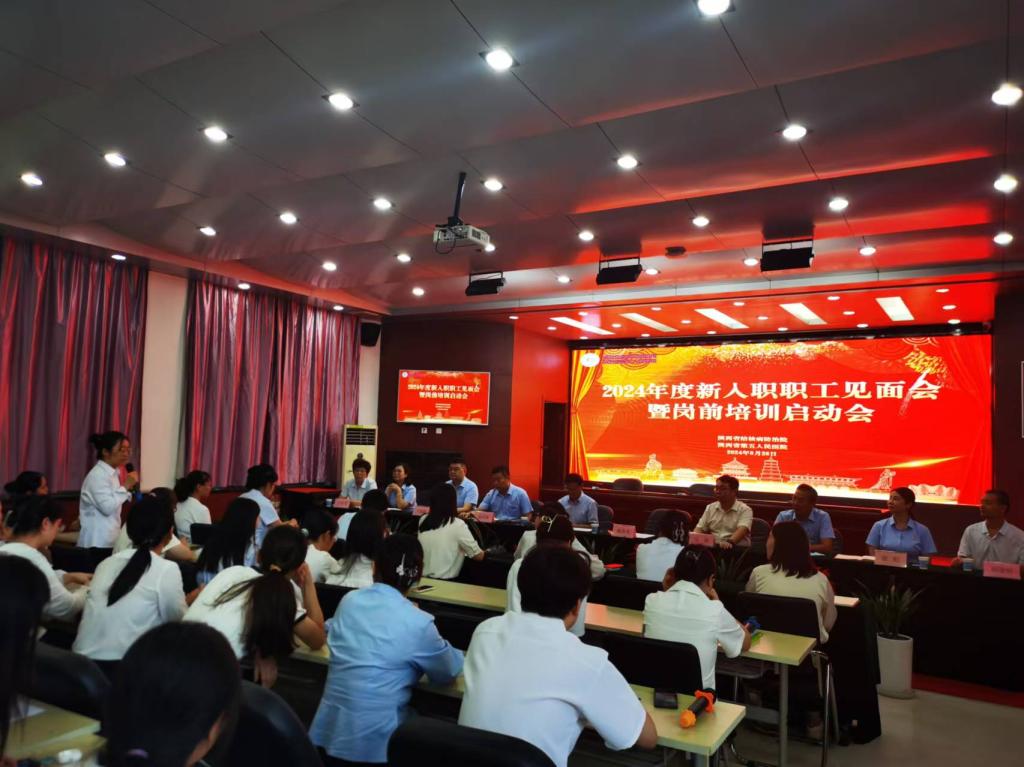 “医”路迎接新力量,携手绘就新未来。8月26日下午,我院隆重召开2024年度新入职员工见面会暨岗前培训启动会,会议由党委书记甘昭平主持,院长魏海龙宣布岗前培训正式启动并对新职工致以美好寄语,院领导班子成员、行政职能科室负责人及38名新入职职工参会。