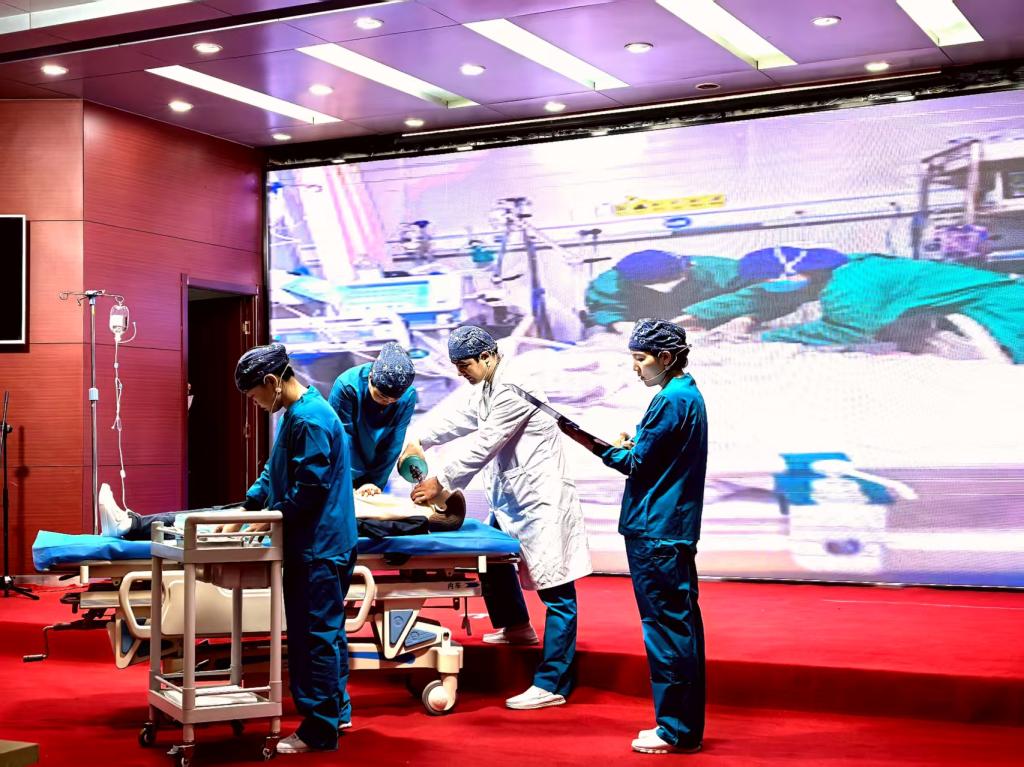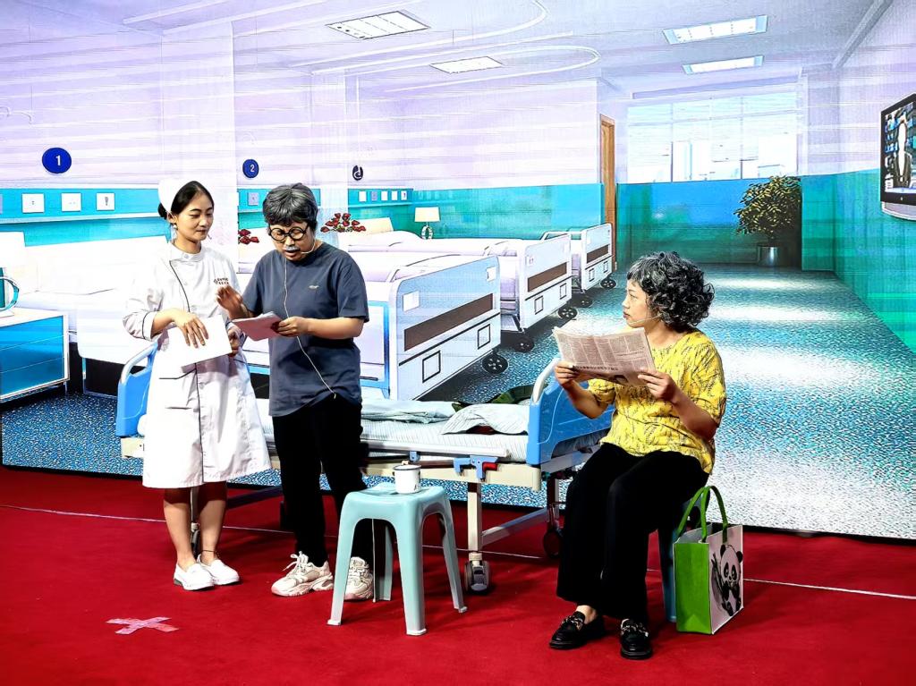 随后进行2025年护理人文叙事展演。各科室以多样化的形式展现护理工作中的温情瞬间:消毒供应中心带来欢快的快板《情暖五院》,用节奏明快的语言诉说着对医院的热爱;内六科的情景剧《以爱护航,医路同行》、综合外科的《以爱为桨,乘风破浪》等节目,生动展现了医护人员与患者并肩同行、战胜病痛的感人故事;综合内科的演讲《生命的刻度》、内七科的诗朗诵《医院里的微光》,以深情的语言诠释了护理工作者对生命的敬畏与守护。一个个精彩的节目,从不同角度展现了护理人员的专业与爱心,赢得了现场观众的阵阵掌声。