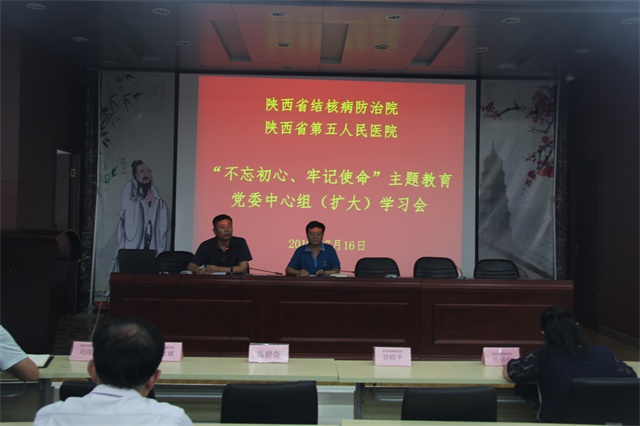 7月16日上午,我院党委召开“不忘初心、牢记使命”主题教育中心组(扩大)学习会,院班子成员及中层和护士长及在院党员90余人参加,会议由党委书记甘昭平主持。
