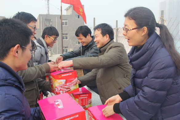 团省委权益部崔部长一行五人为在这里无私奉献的社工志愿者送上了春节慰问品。我院团委代表卫生系统为儿童村的45名流动儿童送上了学习文具,帽子、手套等御寒用品。崔部长详细询问了在这里工作的社工和大学生志愿者的工作和生活情况,同时勉励孩子们好好学习,注意出行安全,最后祝福活动中心的社工志愿者、流动儿童度过一个愉快祥和的春节!