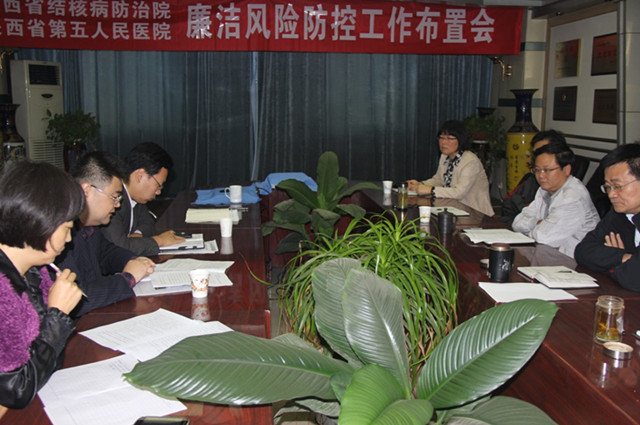 2013年9月24日上午,我院在行政楼二楼会议室召开了廉洁风险防控工作布置会,医院领导班子成员及院办、党办、纪检监察审计科负责人参加了会议。 会上,甘昭平书记传达了陕西省卫生厅下发的《关于加强全省公立医疗机构廉洁风险防控工作的实施意见》(陕卫办发[2012]446号文件)与《陕西省三级公立医疗机构廉洁风险防控实施方案》(陕卫办发[2013]210号)文件精神,由纪检监察审计科科长汇报了前期调研其他医院开展公立医院廉洁防控工作的情况。医院领导班子成员对我院开展公立医院廉洁防控工作进行了反复讨论,对此项工作的重要意义及必要性达成了共识。会议决定,先期由纪检部门尽快起草成立廉洁防控领导小组及工作机构,根据具体此项工作所涉及面,如何落实?设立若干个工作小组,明确各自职责,制定具体实施方案。按照省厅、医院方案认真组织实施,确保此项工作在我院顺利开展。