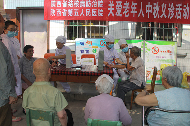 9月5日下午,我院组织医护人员来到长安区杜曲夕阳红老年公寓开展关爱老年人中秋义诊活动。