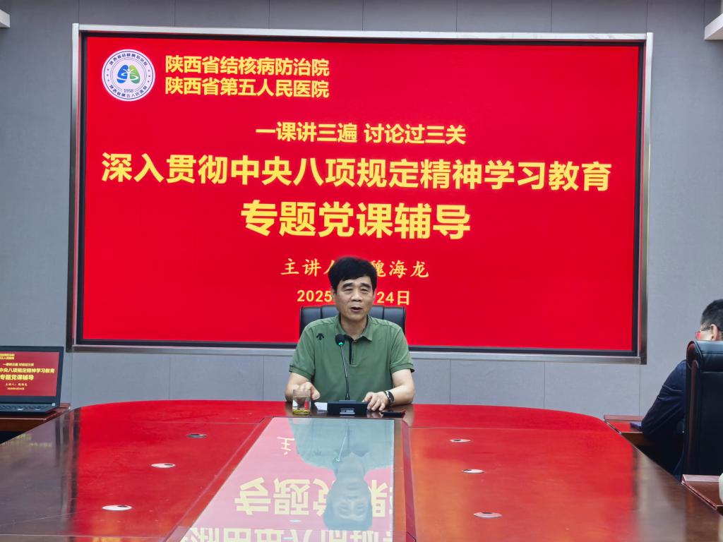 4月24日,我院开展深入贯彻中央八项规定精神学习教育专题党课辅导活动,院长魏海龙带头讲党课。会议由党办主任滕飞主持,在院领导班子成员、党员及非党员干部60余人参加。