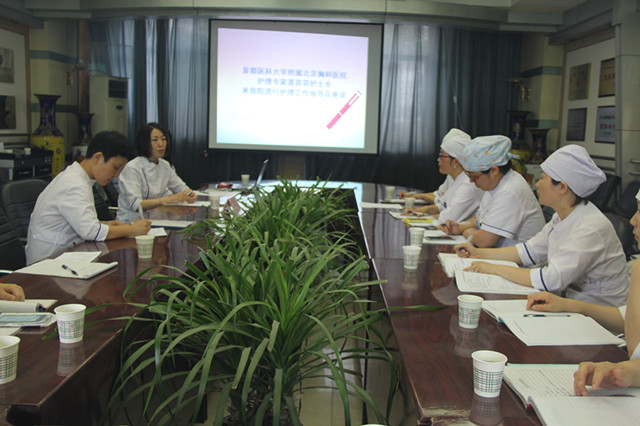 6月20日下午,首都医科大学附属北京胸科医院第三批专家团队莅临我院,在多功能学术厅为我院全体医护人员带来了四场精彩的的学术讲座。其中,护理专家组聂菲菲护士长为我们讲解了《结核病区优质工作交流》,并于6月21日上午就护理工作的日常管理与我院各科护士长及骨干护士进行了护理工作指导及座谈。