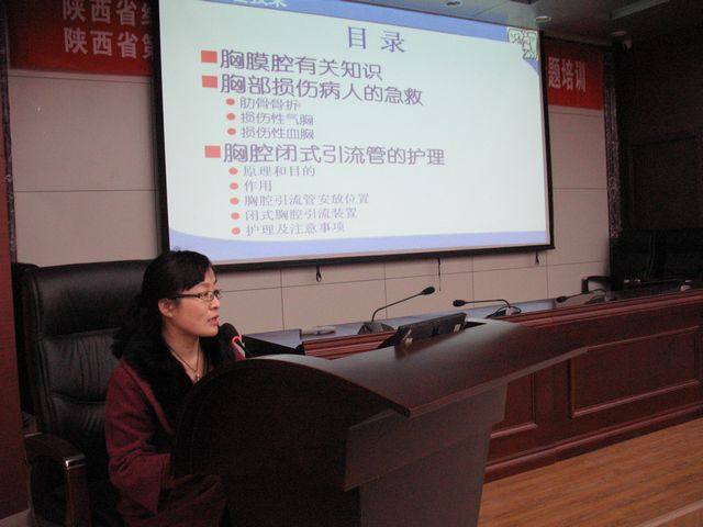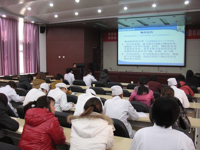 胸腔闭式引流作为一种治疗手段广泛地应用于气胸、血胸、脓胸的引流及开胸术后的胸腔引流,对于疾病的治疗起着十分重要的作用,在临床工作中比较常见。为了提高护理人员对胸部损伤病人的急救与处理能力,做好胸腔闭式引流护理,护理部于2月17日下午在多功能学术厅举办主题为“胸部损伤病人的急救及胸腔闭式引流护理”继续教育讲课。 本次讲课由杨雪侠护士长主讲。杨护士长从胸膜腔有关知识、胸部损伤病人的急救、胸腔闭式引流管的护理三大方面进行了讲解。共有近百名护理人员聆听了此次讲课,并认真做了笔记。 护理部副主任李凤娟代表全体护理人员对杨护士长的辛勤授课表示感谢,并指出我院作为结核病专科医院,气胸、脓胸及各种开胸手术比较多,胸腔闭式引流也比较常见。因此,做好胸腔闭式引流的护理十分重要,是确保医疗护理安全的重要环节,同时要求大家加强专业知识学习,不断提高自身素质,以满足医学快速发展的需要。