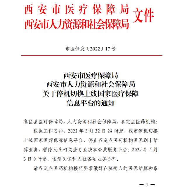 关于停机切换上线国家医疗保障信息平台的通知