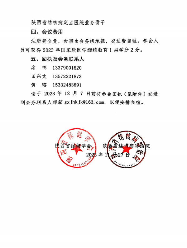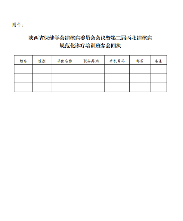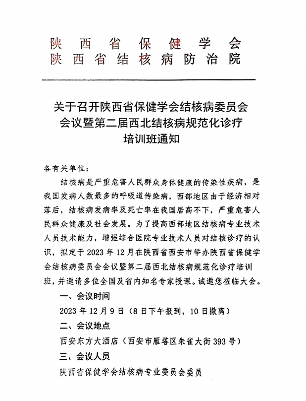 关于召开陕西省保健学会结核病委员会会议暨第二届西北结核病规范化诊疗培训班通知