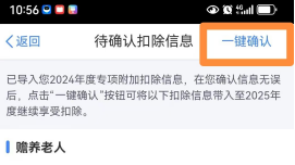 4、转入“待确认扣除信息”页面,如不需要修改,核对信息后点击“一键确认”。 |