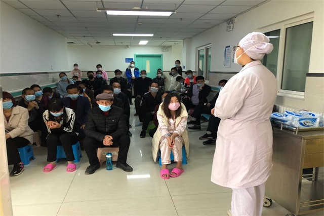 岳亚娟护士详细讲解了“早期、联合、适量、规律、全程”十字用药方针,强调坚持用药的重要性;雷艳护士从科室专科特色着手,为患者普及了糖尿病与肺结核这对“姐妹病”的发病机制和治疗护理;最后,为了减少交叉感染,让患者掌握正确的洗手方法,由我们的护士张瑶和王倩茹为患者现场演示“七步洗手法”,同时讲解了手卫生的时机和重要性。
