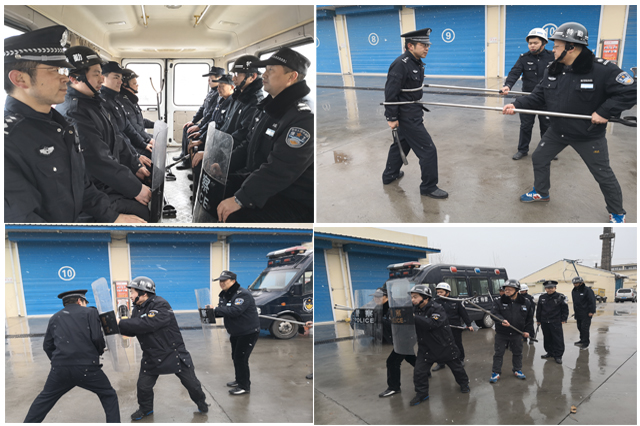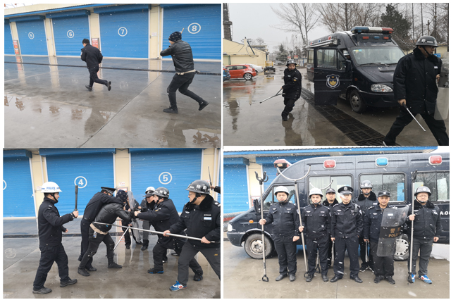 天气严寒,雪花飞舞,冷风刺骨,警官和保卫人员不畏严寒,针对医院不同场合、不同角度位面和可能出现的暴恐分子情景进行现场模拟、应对、周旋等技巧进行学习并现场演练,随后,警官还就防暴器材的使用方式还进行详细的讲解。