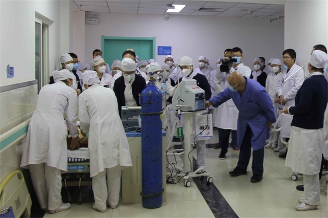 此次演练严格按照医院《急救类、生命支持类医学装备应急预案》的具体要求执行,由医务科主任唐浩暅担任总指挥,设备科主任张军国担任现场指挥,以内四科为模拟演练现场,假定在患者急救过程中呼吸机突发故障,无法抢修,且科室现有呼吸机不足的条件下,进行设备应急调配的演练。临床科室各派出2名医生及护士共40余人参观了本次演练。