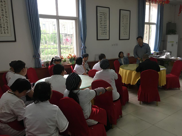 陈主任首先用言简易懂的道理讲述了洗手对个人、家庭、社会的必要性,如餐前便后要洗手、做饭前要洗手、接触不同生熟食物要洗手等。随后,陈主任从“内、外、夹、弓、大、立、腕”七个方面详细讲解了洗手步骤及要领,并做了相应的洗手方法现场教学演示,通过讲练结合的方法,带动食堂员工边学边练,让食堂员工领悟洗手的重要性以及彻底掌握洗手的诀窍要领。