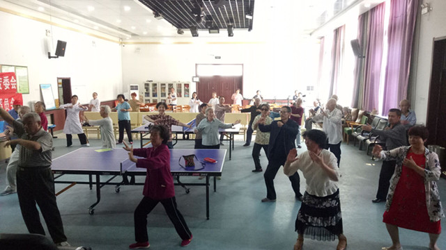 最后,随着缓慢悠扬的音乐响起,中西医结合科护士刘利为大家现场展示中医“八段锦”,老职工和在场所有医护人员也都积极地学习、练习,现场气氛融洽。