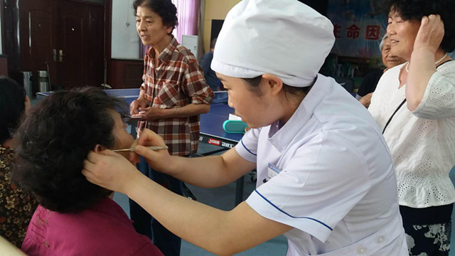 张燕副主任为老年人讲解了十大养生穴的体表定位、作用及相应按摩手法,为了更直观更简单的让大家理解,现场杨薇护士长在自己身体上展示穴位的体表位置、定位方法和按摩手法;体验耳穴埋豆、赠送胃痛帖;最后由护士刘利和护长杨薇带领大家一起做八段锦养生操。活动现场,中医养生知识咨询及体验耳穴埋豆的人员络绎不绝。
