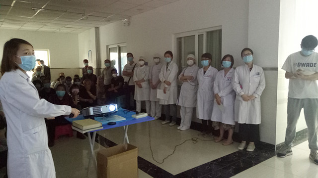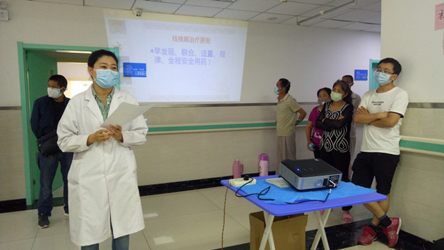 会议开始,首先由胡萍医生从结核病概念、传播途径、治疗期间注意事项、用药不良反应及心态调整五个方面详细的讲解结核相关知识,使各位患者对结核病有了更深层次的了解。随后,韩珂卿药剂师为患者朋友讲解结核药物的宣教知识,进一步加深了大家对结核药物的认识。接下来,总务科张俊和副科长对夏天使用空调的注意事项给予温馨提示。最后,患者及家属和在场医护人员进行了交流沟通,就患者提出的“出院后家庭消毒注意事项”,“用药后出现不良反应问题”,护理部李凤娟主任和韩珂卿药剂师为患者一一解答,得到了患者及家属一致好评。