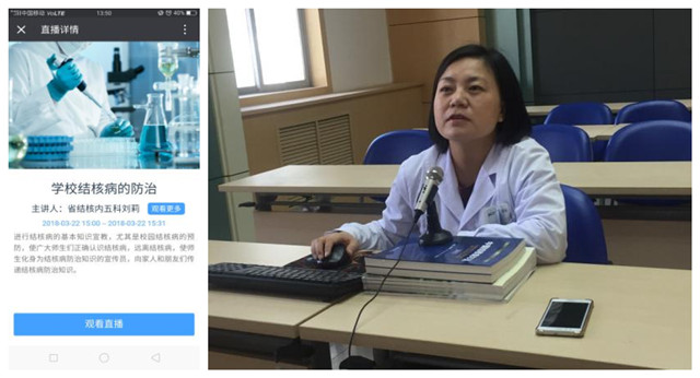 活动三,3月22日下午,内五科刘莉主任在医邦平台陕西省结核病防治院健康教育学校进行学校结核病防治专题讲座。
