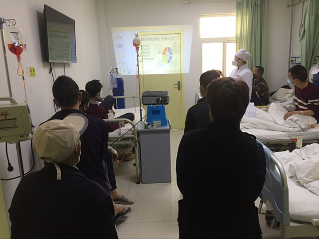 为了提高肺结核合并糖尿病病友的治疗及服药依从性,使病友积极配合治疗,促进康复,陕西省结核病防治院内四科护士长吝昭君于4月9日下午4:30在病房为8名肺结核合并糖尿病患者进行了有关糖尿病健康知识讲座。