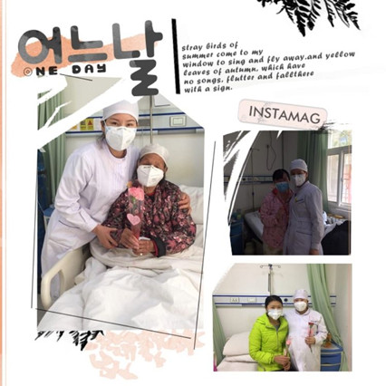 科室一片欢声笑语,热闹非凡。医护们笑迎每一位患者,送上他们亲切的问候和最真诚的祝福,并微笑献上芳香的鲜花。美丽的鲜花映照着病人们甜美的笑容,洋溢着温馨的气氛,病人们纷纷与医护们合影留念留住这幸福的一刻……