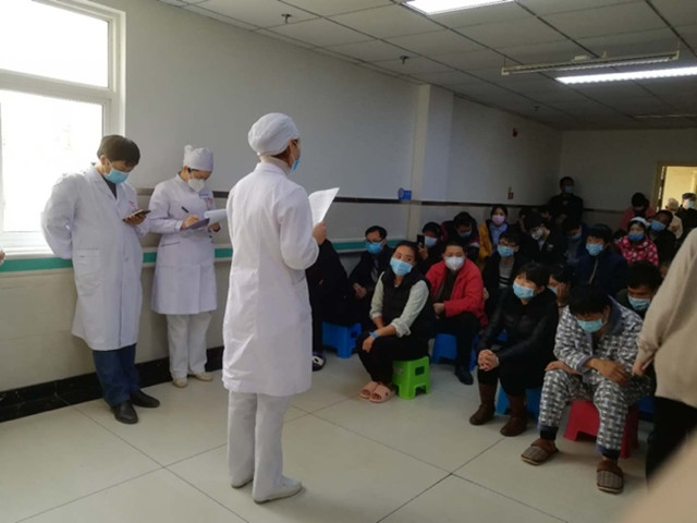 会议开始,刘晓荣护士长代表科室对患者及家属的出席表示感谢,并向患者介绍参会的工作人员,阐述了此次公休座谈会的目的和意义。首先由科主任杨万福介绍科室的相关情况,主要收治结核病、糖尿病合并结核病的病人。在难治性结核、结核病合并糖尿病、重症结核等疾病的诊断与治疗方面,具有丰富的临床经验及鲜明的医疗特色;刘侠医生向患者详细介绍了结核病的诊断,治疗,及治疗过程中的配合;孟盼护士为大家耐心细致的介绍了农合医保政策,现场答疑解惑;刘晓荣护士长为患者介绍住院期间的人身安全,财产安全,环境安全相关注意事项,并特别讲解糖尿病患者饮食的知识。最后,对于患者在住院期间提出的相关建议与意见进行协调解决,会议过程气氛温馨融洽,一片欢声笑语。