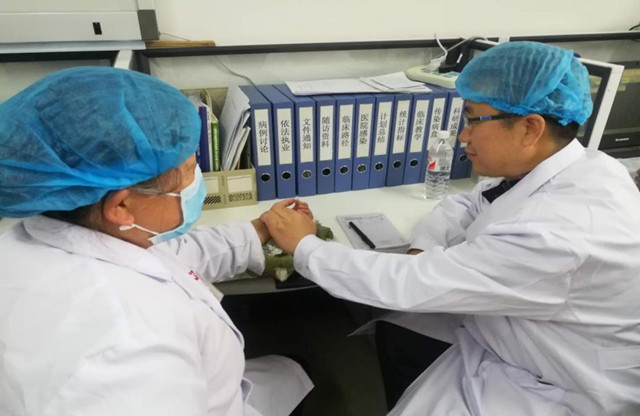上午,常江副主任医师一到科室,在简单的了解工作后,就投入到对患者的诊治工作中。他深入病房,对30多位患者一一诊脉、察舌,详细了解病情后开具中药处方;并让我们每一位大夫感受患者的脉象变化,讲解疾病发生的机理、方药及用药后可能出现的变化,告知患者注意事项。直至上午11点才走出病房,期间也解答了一些患者家属的咨询。