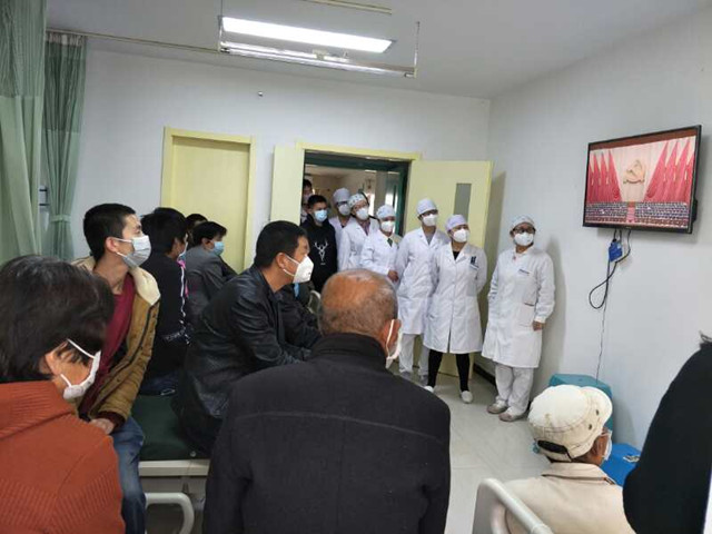 10月19日下午,陕西省结核病防治院耐药结核专科,在刘莉主任主持下,由护士长张宁组织,李伟副主任及医务人员与患者及家属共计四十余人集中收看了中央十三套播出的中国共产党第十九次全国代表大会专题会议。