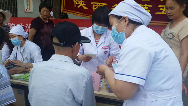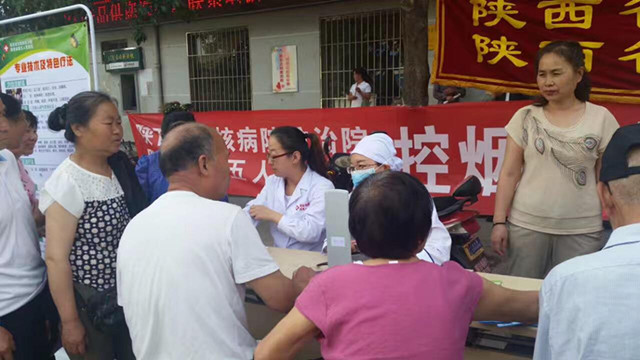 活动时间是6月1日上午,地点太乙宫街道。在义诊现场我们中西医结合科张燕副主任与综合内科杜娜医师为村民量血压、把脉、详细询问村民们的身体状况,分析病情,耐心讲解控烟及结核病的知识,认真解答群众关于常见病、多发病的预防、诊治及预后等疑难问题。