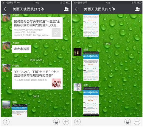 八、3月24日晚上,仵倩红主任在科室的微信圈转发了《国务院办公厅关于印发“十三五”全国结核病防治规划的通知》,并组织科室人员积极关注3.24,了解“十三五”-“十三五结核病防治规划有奖竞答”活动,截止3月25日下午四点,我们内五科已经有28人积极参与,认真答题,满分交卷。