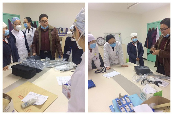 无创呼吸机作为科室急救设备,其使用操作的准确性和安全性直接影响到病人的生命,为此,我科专家就呼吸机的工作原理、注意事项、操作步骤、呼吸机使用的适应症和禁忌症、参数调节、常见报警原因及其处理方法、管路的消毒,机器维护等相关知识和实际操作进行了详细地讲解。