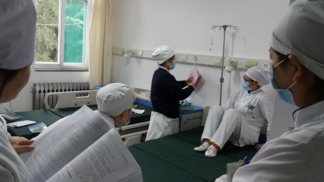 此次培训以示范练习、考核相结合的形式进行。在护士长杨薇的指导下,由经验相对丰富的护士为大家讲读了各项护理应急预案,如:患者发生输液反应,患者发生猝死,突然停水、停电、仪器故障等的应急预案;学习了护理管理制度,如分级护理制度、查对制度、交接班制度等;护理操作技术,如基本的七步洗手法、静脉输液、输血、吸痰、导尿、鼻饲等常见操作和抢救病人时的徒手心肺复苏、简易呼吸气囊的使用等内容。示教护士向大家传授了各自的工作经验,进行了规范的操作示范教学,并现场进行纠正指导,基础护理操作培训由示教护士示范教学,全科护士进行练习,练习结束后进行摸底考核,护理理论培训采取笔试的形式进行考核,考试结果显示了我科护理人员扎实的理论基础,有效促进了护士的基础理论、基础知识、基本技能的掌握,提高了年轻护理人员的业务素质和综合能力。同时通过这段时间一起学习、一起探讨也增进了大家的友谊。