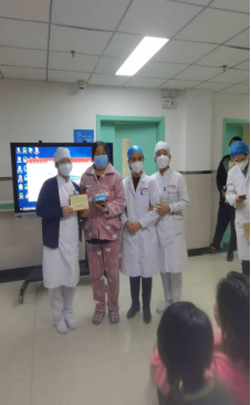 当天,恰逢72床屈阿姨生日,屈阿姨近期正因为过敏而坐卧难安,心情低落。健康讲座结束后,刘晓荣护士长和护士们拿出提前悄悄准备好的生日蛋糕和生日贺卡,在护士长的倡议下,参加讲座的所有护士和患者一起为她唱响了《生日快乐》,屈阿姨眼里泛着泪花,紧紧握着护士长的手说“非常非常感谢你们,非常感谢、、、、、、”
