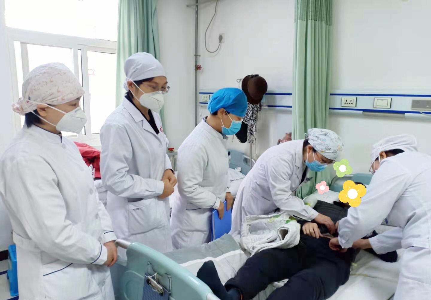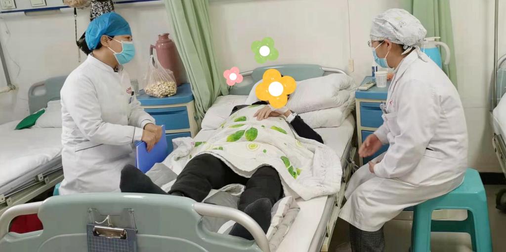 2周前,B超检查发现腹腔积液,刚恢复活力的老人又陷入了情绪的低谷,家属也很着急,仵倩红副院长亲自安抚好患者及家属的情绪,但令仵倩红副院长担忧的是可能是肿瘤腹腔转移,立即安排腹腔穿刺,腹腔积液紧急送检,相关化验结果回报果然不出所料,腹水中发现癌细胞。仵倩红副院长建议安排院内专家会诊,必要时请院外肿瘤专家来院会诊,并邀请我院心理健康科室干预。于12月29日仵倩红院长亲自带领心理咨询师查房。在病房内,仵倩红副院长和心理专家针对患者的情况进行了耐心的开导,温暖的话语渐渐打开了患者的心扉,患者说了自己的想法,脸上也露出了久违的微笑(于是便有了文章开头的那一幕)