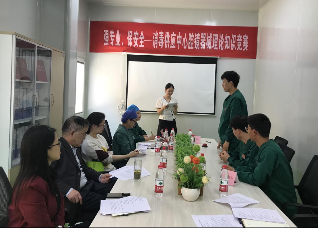 5.12护士节来临之际,为进一步激发我科护理人员的护理服务理念,提高护理人员专业素养,营造良好的在岗在位学习氛围,同时也为护理人员提供一个自我展现平台。5月11日下午,消毒供应中心举办了“提升专业知识、做好安全保障”为主题的腔镜器械知识竞赛活动。护理部李凤娟主任和感染办李雪全程参与本次活动。