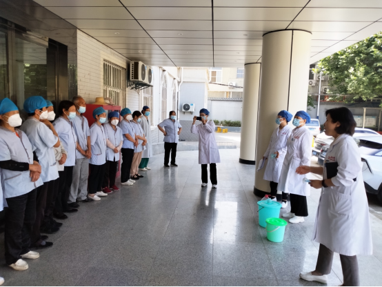 闫晓婷主任首先对保洁员的着装提出了要求,要求工服整洁干净,工服和工作鞋不能穿回家,防止将病菌带回家中,随后讲解了医用口罩及N95口罩使用区域及正确佩戴方法,着重指出,一定罩严口鼻,才能起到防护作用,最后对手卫生、个人防护的重要性进行了说明。