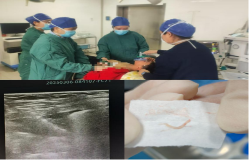 因患者年龄小、心理承受能力弱,对穿刺手术极度恐惧,杜娜医师与科主任积极和麻醉科沟通协调。在家属同意的前提下,最终决定于2025年3月6日上午8:30在静脉全身麻醉下为患者实施手术。功能科张蕾、惠立本两位主任凭借精湛技术,在彩色多普勒超声实时引导下顺利完成穿刺活检术,整个过程进展顺利,患者未出现明显出血、气胸等并发症,术后,患者生命体征平稳,状态良好,复查超声无明显不适,走回病房。