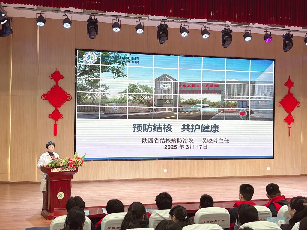 3月17日,我院内一科吴晓玲主任受邀走进未央区汉都新苑中学,开展主题为“预防结核 共护健康”的结核病防治知识科普讲座,助力加强校园结核病防控工作,为构建健康校园、守护师生健康贡献结防力量。