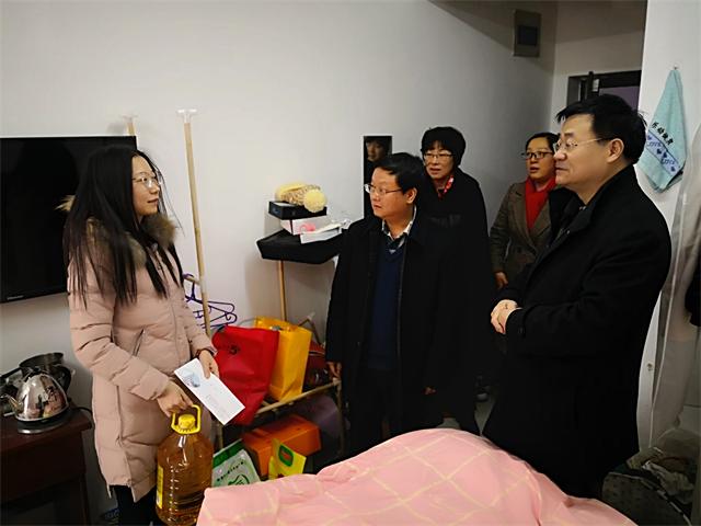 2月2日上午,在新春佳节即将来临之际,带着医院党委的关怀之情,捎着新春的祝福和问候,我院刘锦程院长、甘昭平书记一行深入走访到困难职工家中进行慰问。慰问组把医院干部职工的关怀送到困难职工的心坎上,并为他们带去了慰问金以及米、面、油等慰问品,使困难职工感受到医院这个大家庭的温暖。同时,在慰问中详细询问了他们的所需、所难、所盼以及目前的生活情况。院领导鼓励他们面对生活要树立信心、保重身体,医院就是你们的坚强依靠。祝愿他们能过一个欢乐、祥和的新春佳节。