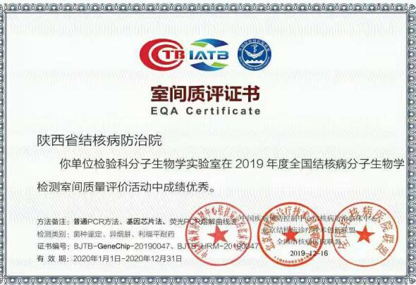 我院是陕西省结核病防治定点单位、陕西省结核病医院联盟主委单位、陕西省结核病临床诊疗质控中心,近年来我院院领导高度重视结核实验室的能力建设,强化实验室的规范化、标准化和信息化管理,2019进一步进行实验室升级改造、规范P2+负压实验室,加强人员培训,进一步提高了结核病实验室的涂片镜检、培养、分子生物检测技术的检测能力和水平。在2019年度全国结核病涂片镜检、培养、分子生物检测技术室间质量评价活动中,检验科人员在梁亚萍主任带领下严格按照实验标准规程操作,充分发扬严谨、求实、精益求精的工作精神,团结一致,细致认真,最后三项均获得了室间质评优秀证书。