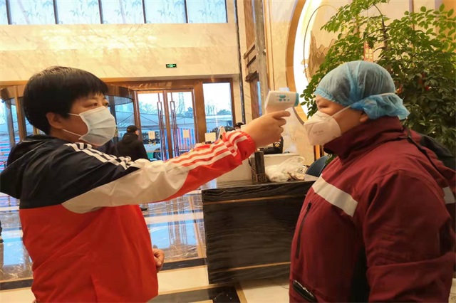 2月1日一大早,大家相约为老战友送行,一起接受体温检测。前路不管有多艰险,我们都无所畏惧!此时,我们心里想的只有:“疫区人民需要我们,武汉人民需要我们,祖国需要我们,我们必须勇敢出征,不计生死,才能不负众望,完成省上交给我们的任务!”