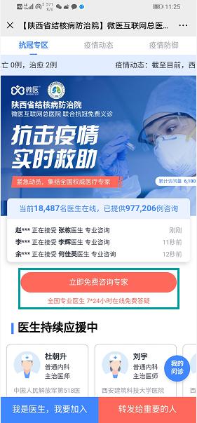 第三步:点击下方“抗冠义诊”进入义诊通道,点击“立即免费咨询专家”即可。