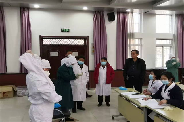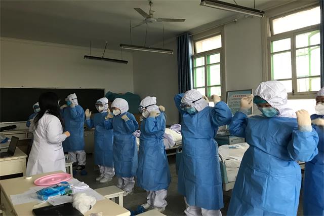 同时,联合护理部还对全院职工开展了防护用品穿戴和脱卸示教培训及考核,从1月23日至2月1日历时10天,完成了第一批至第三批援汉医护人员、抽调至隔离病房救治人员、发热门诊工作人员、预检分诊工作人员、其余全体临床科室及医技科室医护人员、相关辅助科室人员(如医疗废物相关管理人员、保洁人员、洗衣房工作人员、消毒供应室人员、污水站相关管理人员、保卫科工作人员)等共计430人的培训及考核工作。