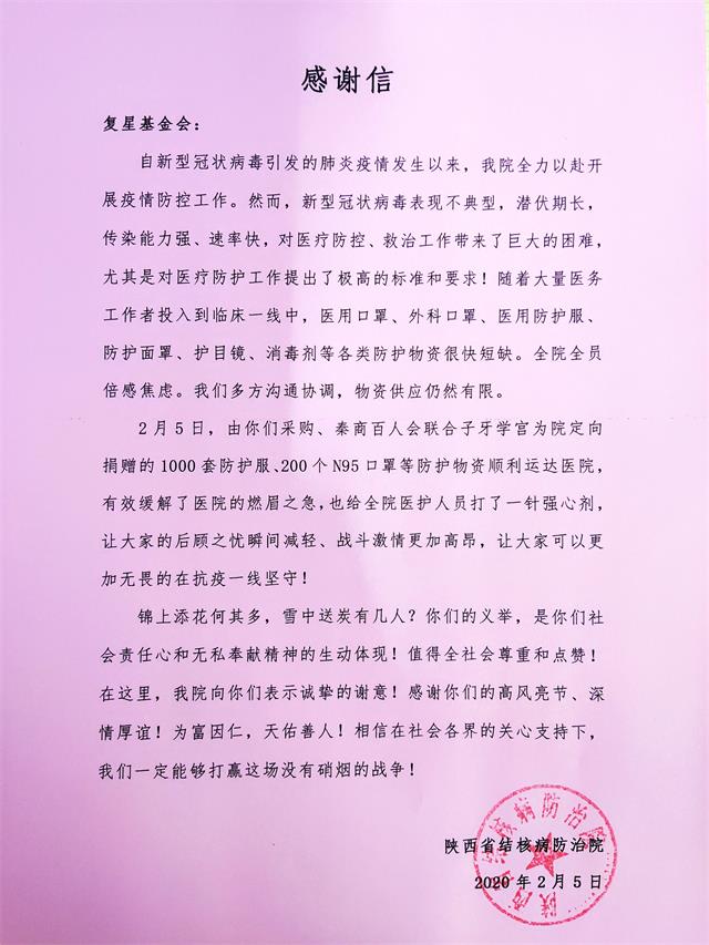 锦上添花何其多,雪中送炭有几人?你们的义举,是你们社会责任心和无私奉献精神的生动体现!值得全社会尊重和点赞!在这里,我院向你们表示诚挚的谢意!感谢你们的高风亮节、深情厚谊!为富因仁,天佑善人!相信在社会各界的关心支持下,我们一定能够打赢这场没有硝烟的战争!