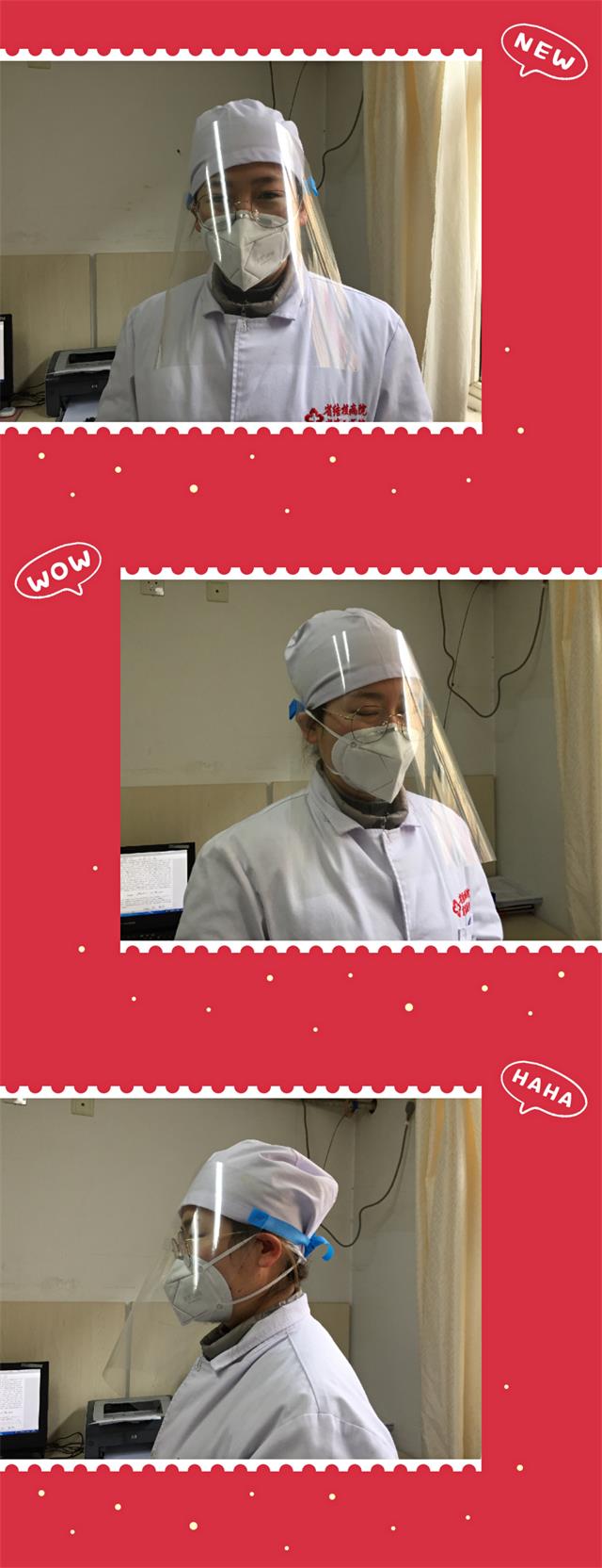 综合内科发热门诊的医生们纷纷开动脑筋,利用各种现有资源实行个人防护。他们用废旧塑料包装袋代替防水靴套,用可重复使用的防水围裙代替一次性防护服,更值得一提的是,她们利用废旧的胶片制作了防护面屏,带上它为患者采集咽拭子标本,更好的保护了医护人员。