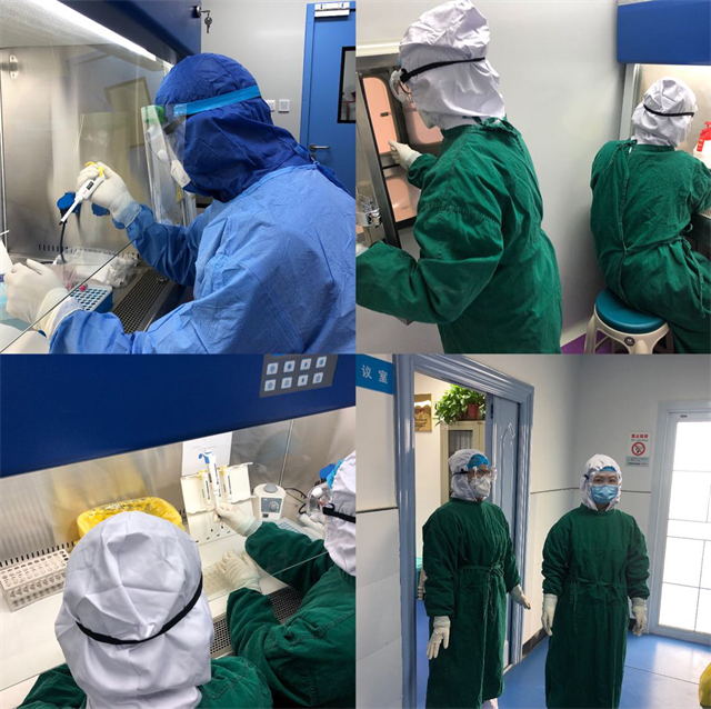 检验科是除临床医护人员外距离病毒最近的人,虽然我们没有接触患者,可病毒随时伴我们左右。疫情就是命令,责任重于泰山,明知危险无处不在,在梁主任的号召下:邹远妩、高漫、朱蕾、王卓、刘玉龙、屈少毅6名工作人员纷纷报名请求参加一线核酸检测;崔尖、李静、李晓晓、刘洋也主动请缨进入发热门诊检验,李昌通、常磊愿承担特殊标本运输工作;李蒙也主动承担科室后勤保障工作,为全科人员的生活物资做好充分联络保障。其他人员也纷纷表示会坚守自己的岗位,坚持学习新冠肺炎理论与实际操作,随时做好接替准备。